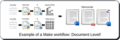 We are going to see how the Make tool can create cross-platform application agnostic workflows that will save time, encourage transparency and collaboration, and keep your code readable for many years. This tutorial is mostly geared for neuroscientists who use R and Matlab scripts but are looking to automate and share their analysis scripts.